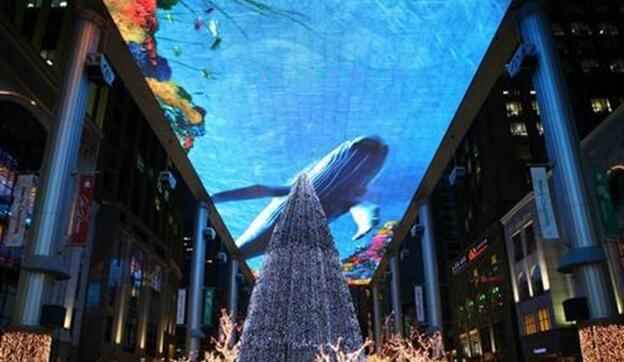 現(xiàn)在有很多商業(yè)街,如購物中心、步行街等都能采用天幕投影來提高整個區(qū)域氛圍,也是一種很好吸客宣傳方式。