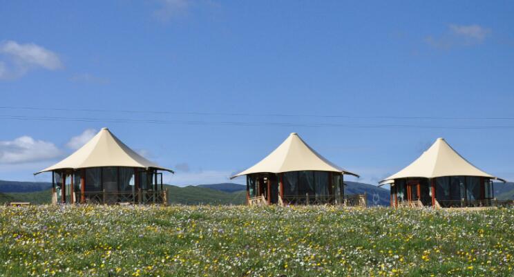 相比一座風格獨到的鋼筋混凝土建筑,膜結(jié)構(gòu)帳篷房作為一種新型材料的住宿建筑,造價相對較低,造型輕盈雅致,而且更加綠色環(huán)保。模塊化的設計,讓帳篷房的設計搭建更加靈活,大大降低了施工時間。