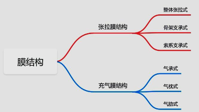 因此本文從膜面預(yù)張力的施加方式(這決定了膜結(jié)構(gòu)的節(jié)點(diǎn)形式和施工方法),將膜結(jié)構(gòu)的分類如下圖表示: