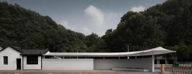 小體量張拉膜建筑小而精致,設(shè)計感強。包括遮陽遮雨棚、涼亭、入口標識等。