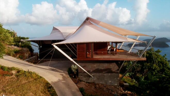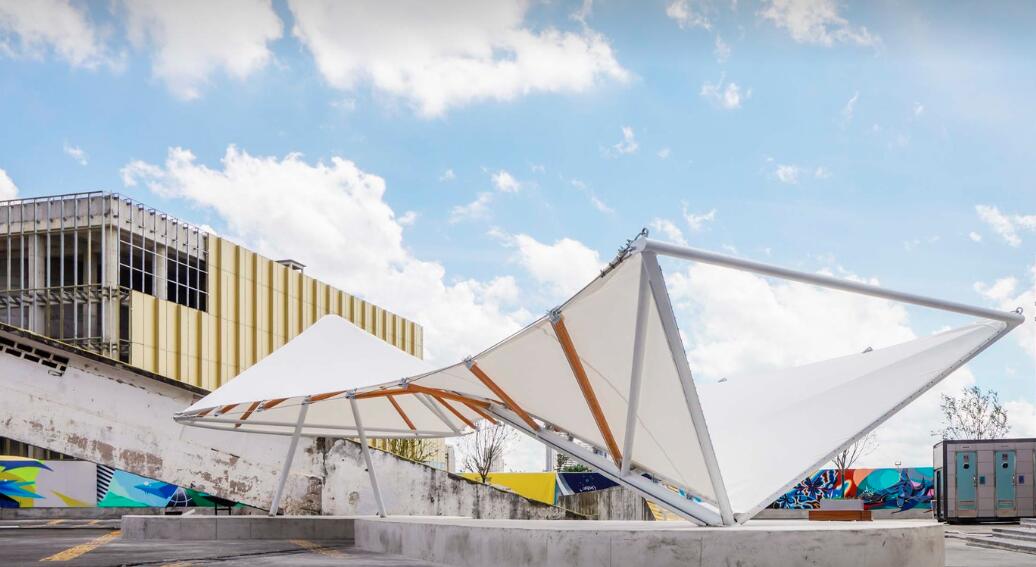那么,張拉膜結(jié)構(gòu)過時了嗎?并沒有,在流行混搭的時代,膜結(jié)構(gòu)能駕馭的建筑形式也更加多樣化,它能搭配的不再是鋼結(jié)構(gòu),而與木結(jié)構(gòu)、竹結(jié)構(gòu),集裝箱,甚至混凝土結(jié)構(gòu)搭配也能呈現(xiàn)耳目一新的效果。它可以是小體量建筑、景觀構(gòu)筑物、也可以是大跨度建筑屋頂及建筑外立面等。