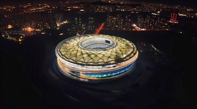 夜晚亮燈后整個(gè)球場(chǎng)流光溢彩、絢麗璀璨,燈光系統(tǒng)通過復(fù)雜而有規(guī)律的排布形成層次感,彰顯浪漫的海濱色調(diào),呈現(xiàn)一場(chǎng)唯美浪漫的視覺盛宴。