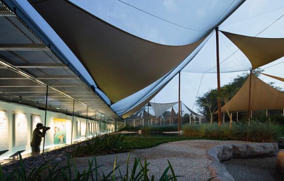 織物材料通常還可以回收利用或再利用,在其生命周期內(nèi)所需資源較少。被動通風(fēng)和透光膜的采用,通過產(chǎn)生熱滯后自動調(diào)節(jié),在炎熱和干燥的氣候條件下穩(wěn)定室內(nèi)溫度,從而進一步降低能耗。在較為溫暖的月份,通過建筑“表皮”進行自然通風(fēng)有助于去除空氣中多余的水分,從而減少冷卻系統(tǒng)的負(fù)荷。