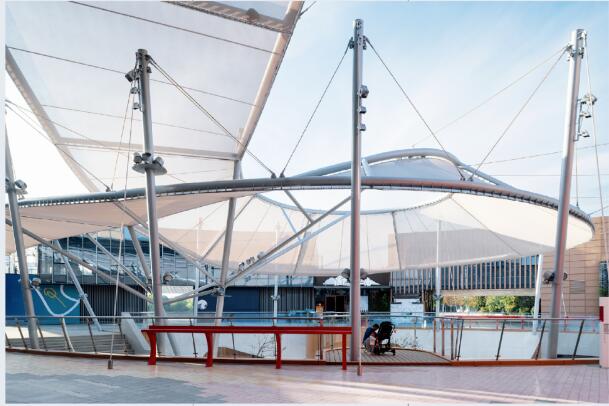 本項(xiàng)目通過膜結(jié)構(gòu)設(shè)計(jì),為下沉廣場提供了一個(gè)適配的覆蓋方案。在設(shè)計(jì)中充分考慮了安全、耐久、經(jīng)濟(jì)、環(huán)保等因素,具有良好的觀賞及美學(xué)效果。