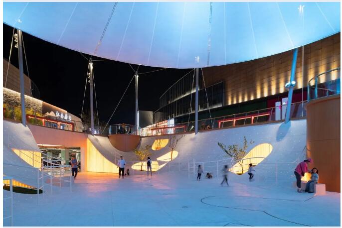 但不管怎么有格調(diào)的下沉廣場,它也是一個(gè)半露天的公共空間,如果缺乏遮陽避雨設(shè)施,無法提供更加舒適的休閑環(huán)境,因此,在下沉廣場上方增設(shè)頂蓋是非常必要的,而且一個(gè)兼具美觀、時(shí)尚、實(shí)用的頂蓋也是建筑的加分項(xiàng)。