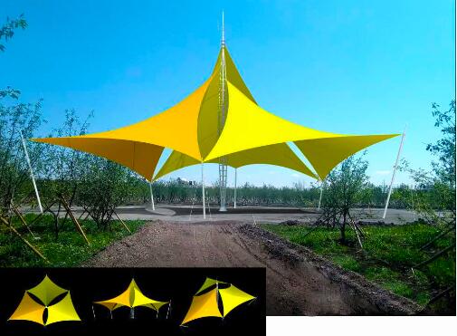 膜結(jié)構(gòu)不僅擁有美觀的造型,同時也具備形式不同的功能性,它可以是遮陽棚、雨棚、亭子、連廊、光景臺等等。