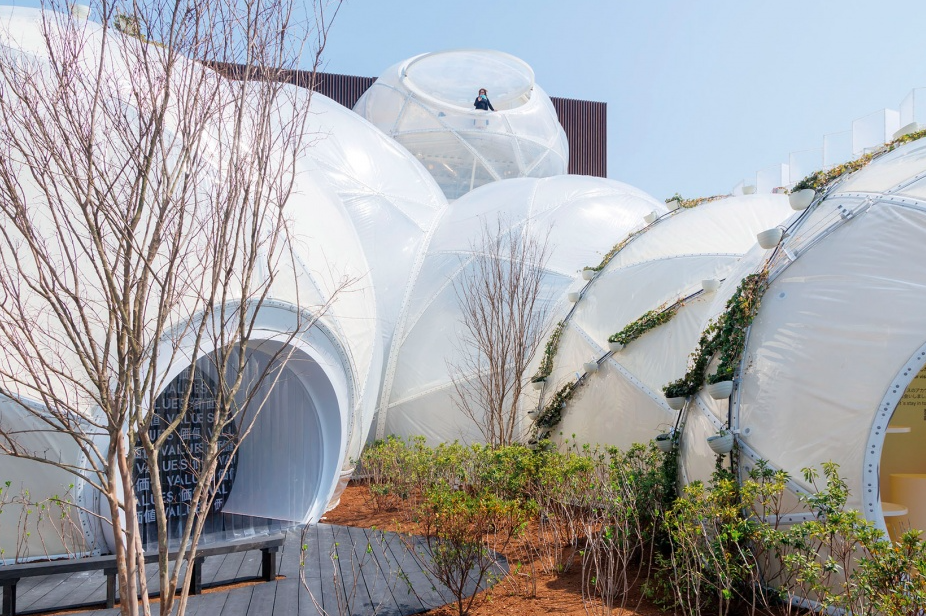 就建筑學(xué)而言,我們也相信“展館”這一建筑類型極具價(jià)值。多數(shù)建筑受市場(chǎng)壓力與投資邏輯的制約,必須盡可能高效利用空間、嚴(yán)格控制預(yù)算、規(guī)避風(fēng)險(xiǎn)。而充氣膜結(jié)構(gòu)建造的展館這一臨時(shí)性建筑, 均可拆解為中小型模塊化單元,便于運(yùn)輸。這使得展館在大阪世博會(huì)結(jié)束后可以整體遷移并重復(fù)使用。
