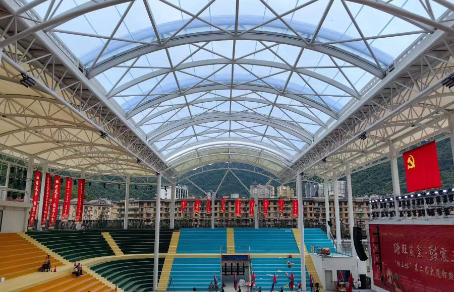 綿陽育才中學(xué)膜結(jié)構(gòu)看臺工程進展