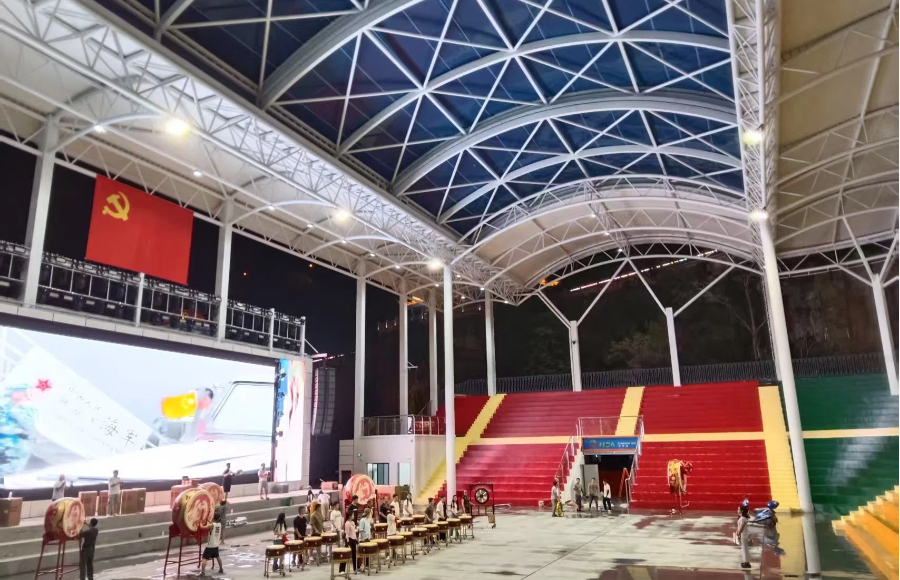 嵐皋村BA籃球場膜結(jié)構(gòu)屋頂工程進展