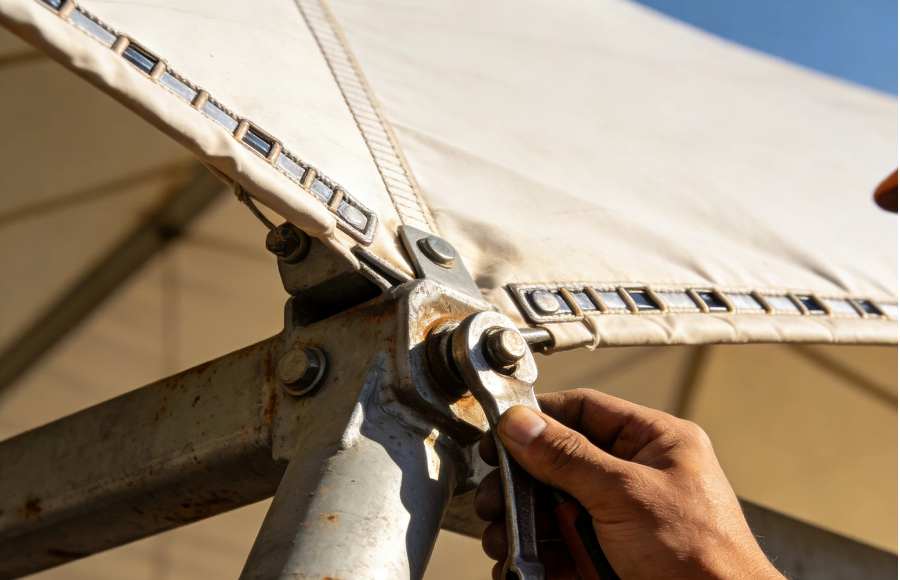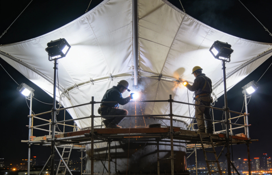 嵐皋村BA籃球場膜結構屋頂工程進展