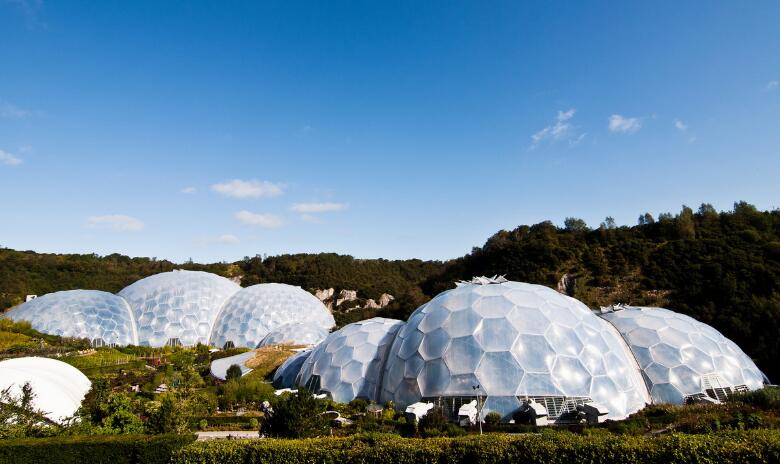 ETFE最早由杜邦公司于七十年代研發(fā),作為一種輕質(zhì)、阻熱的薄膜,可用作航空工業(yè)中的覆蓋層。從那時(shí)起,這種薄膜被零星的應(yīng)用于農(nóng)業(yè)和建筑領(lǐng)域,例如溫室的覆蓋層和太陽能板保護(hù)層。之后,在2001年,這種材料迎來了第一次大規(guī)模應(yīng)用,作為英國康沃爾郡“伊甸園計(jì)劃”(Eden Project)巨大圓形溫室的表面膜材料。該項(xiàng)目是巴克敏斯特·富勒(Buckminster Fuller)的蒙特利爾生物圈概念的進(jìn)化版。奧雅那(Arup)作為工程顧問公司,選擇了ETFE,因其可靠的建筑環(huán)境調(diào)節(jié)能力,可以通過在膜上打印特定的紋理并將其層疊來調(diào)節(jié)光照,這對(duì)于建立一個(gè)適合特定植物生長(zhǎng)的人工氣候是十分必要的。另外,建筑師發(fā)現(xiàn)ETFE的低摩擦系數(shù)可以防止塵土粘附在表面,從而減少維護(hù)成本。