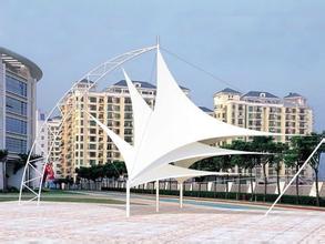 柔性邊界膜結(jié)構(gòu)是指以鋼索等柔性材料為邊界的一類膜結(jié)構(gòu)。由于邊界為優(yōu)美的弧形,加之造型只有,因而深得建筑師的喜愛。柔性邊界膜結(jié)構(gòu)的外形可以是馬鞍形,傘形,波浪形,或是件這些基本外形加以組合的自由造型。輔以鋼索或桅桿等適當?shù)膬?nèi)部支承,柔性邊界的膜結(jié)構(gòu)可以形成大面積的覆蓋空間,如下圖: