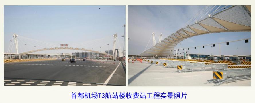 首都機場T3航站樓南線收費站( PTFE+ETFE,2008年竣工,4000m2 )