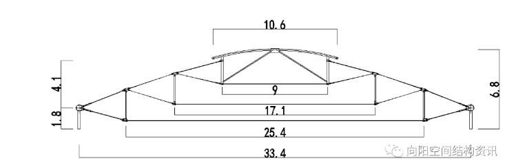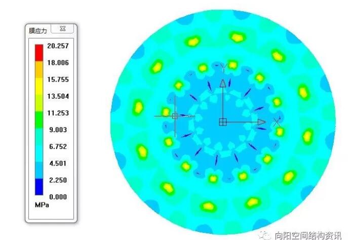 需要說明的是,內(nèi)環(huán)尺寸是由建筑設(shè)計(jì)確定的,并且這里膜面錯(cuò)層,且期間是開敞的,以達(dá)到通風(fēng)的效果。如果僅從結(jié)構(gòu)考慮,內(nèi)環(huán)可以再小很多,結(jié)構(gòu)自重會(huì)更輕。