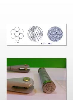 鋼絲束,捻距大、捻角小,因此鋼絲排列緊密、受力均勻,接觸應(yīng)力低,能夠充分發(fā)揮高強度鋼絲的性能,強度高、彈性模量大;但抗扭穩(wěn)定性差,需要現(xiàn)場捻制。